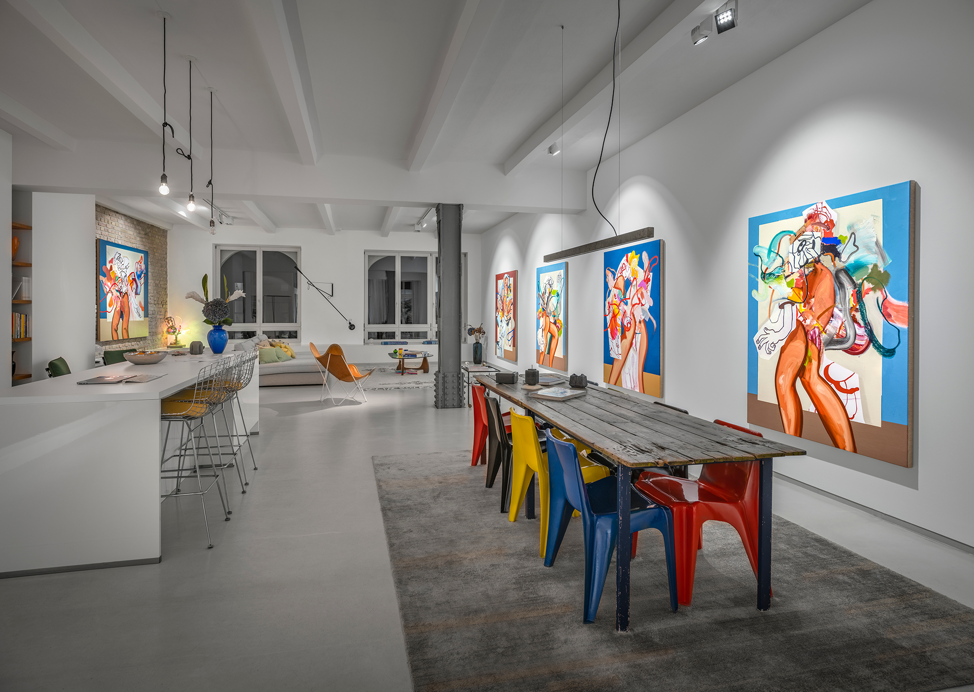 These works engage with key compositional techniques such as sacred geometry and rabatment which helps to guide the viewer’s perception and understanding of the space within the frame.’